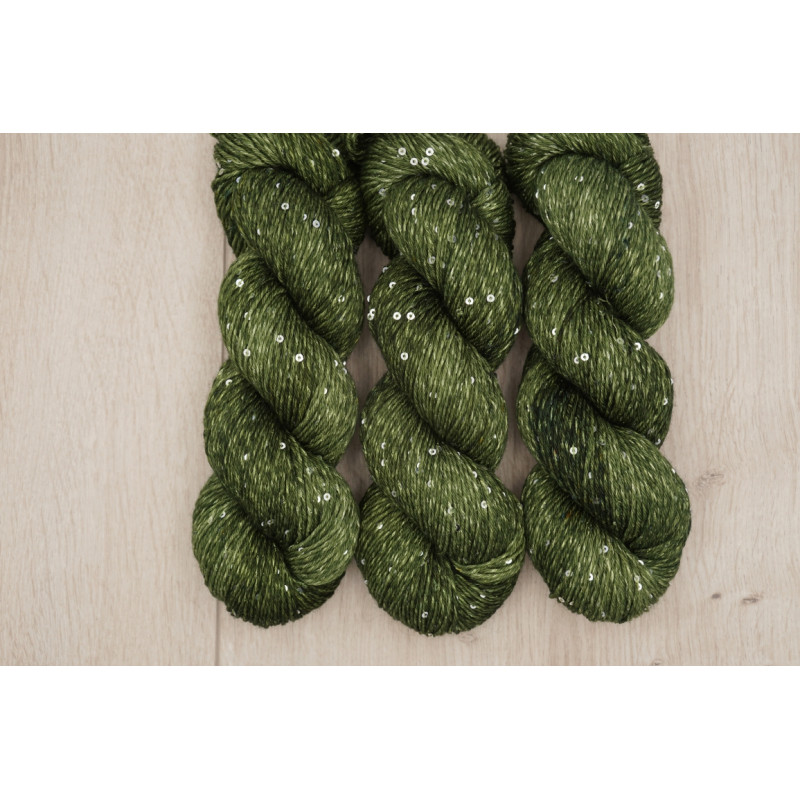 Die Wolle ist ein kuschelig, weiches Merinogarn (Merino extrafine) mit glitzernden Pailletten und mit superwash Behandlung. Sie ist beim Stricken wunderbar weich und perfekt geeignet für glitzernde Tücher, Pullover, Strickjacken und andere Accessoires. Sie ist bei 30 Grad waschmaschinengeeignet. Die Wolle stammt aus mulesingfreier Haltung.