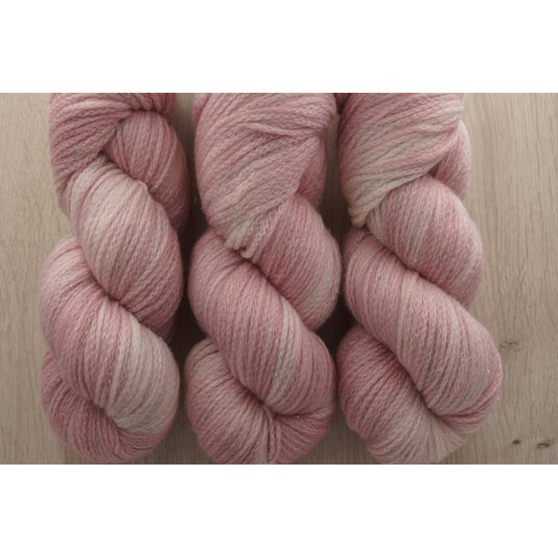 Die Wolle ist ein wunderbares Garn und besteht zu 85 % aus weicher Schurwolle (Merino extrafine) und 12% Polyamid und 3% Stellina. Sie ist superwash ausgerüstet. Perfekt geeignet für glitzernde Strickjacken, Tücher und andere Strickprojekte. Die Struktur der Wolle ist ein geflochtener Faden, der eine fluffiges Strickwerk hervorbringt und mit dem glitzernden Stellina einen Hingucker bildet. Ich verwende dieses Garn gerne für Mützen und leichtere Tücher und leichte Strickjacken. Mit einer Lauflänge von 350m auf 100g ist die Wolle durch die besondere Struktur sehr leicht und fluffig.