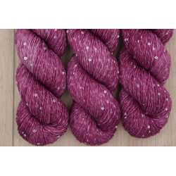 Die Wolle ist ein kuschelig, weiches Merinogarn (Merino extrafine) mit glitzernden Pailletten und mit superwash Behandlung. Sie ist beim Stricken wunderbar weich und perfekt geeignet für glitzernde Tücher, Pullover, Strickjacken und andere Accessoires. Sie ist bei 30 Grad waschmaschinengeeignet. Die Wolle stammt aus mulesingfreier Haltung.