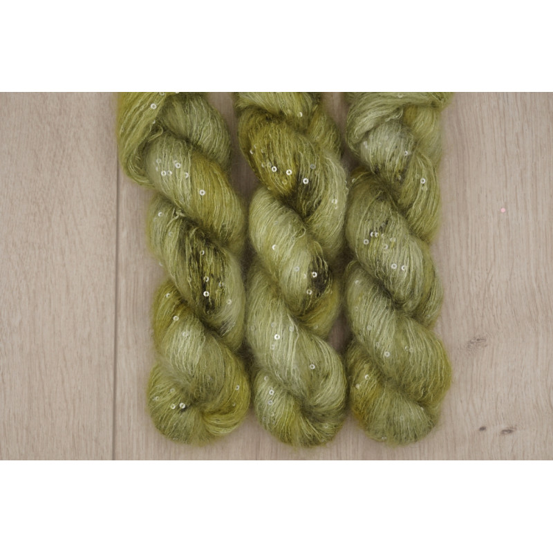 Die Wolle ist ein kuschelweiches Mohairgarn mit zarter Seide und Polyamid und Polyesther. Durch den Mohair-Anteil ist die Wolle im Strickbild wunderbar fluffig und kuschelig. Die Seide bringt der Wolle einen edlen Charakter und für den besonderen Hingucker glitzern die Pailletten im Garn. Sehr schön für edle Pullover, kuschelige Tücher und andere Strickstücke geeignet. Sie ist nonsuperwash ausgerüstet.