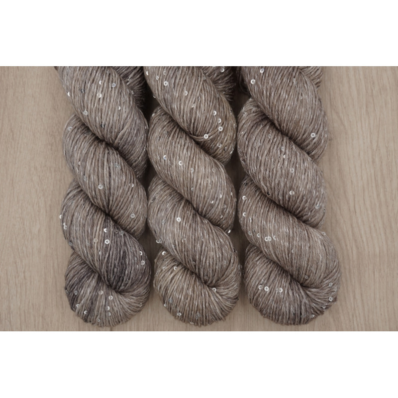 Die Wolle ist ein wunderbar weiches Merinogarn (Merino extrafine) mit glitzernden Pailletten und mit superwash Behandlung. Sie ist beim Stricken weich, hat einen besonderen Fall und ist perfekt geeignet für glitzernde Tücher, Pullover, Strickjacken und andere Accessoires. Sie ist bei 30 Grad waschmaschinengeeignet. Die Wolle stammt aus mulesingfreier Haltung.