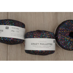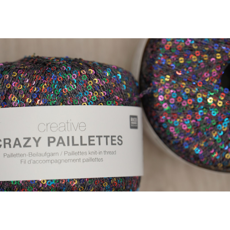 Creative Crazy Paillettes zaubert aus jedem Garn ein Paillettengarn. Einfach das funkelnde Beilaufgarn beim Stricken mitlaufen lassen und schon bekommen die Strickstücke einen glitzernden Effekt in funkelnden Regenbogenfarben. Es gibt ein Anthrazit für dunkle Farben und ein Puder für alle hellen Töne.