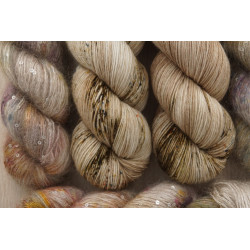 2 Stränge: 85 % Schurwolle (Merino extrafine)/ 15%Polyamid, 400 m/ 100 g; € 23,90/ 100g