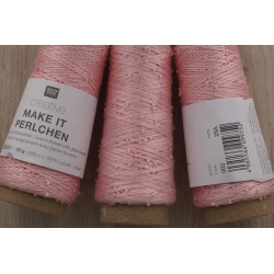 Creative Make It Perlchen besteht aus 100 % Lyocell und ist mit eingearbeiteten Glasperlen versehen. Das Beilaufgarn kann gemeinsam mit anderen Garnen verstrickt oder verhäkelt werden, ohne dass sich die Anleitung verändert, da es einfach mitläuft. Der Faden ist verzwirnt, wodurch sich die Glasperlen nur leicht entlang des Garns verschieben können und Textilien eine dezente Struktur sowie Akzentuierung erhalten.