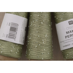 Creative Make It Perlchen besteht aus 100 % Lyocell und ist mit eingearbeiteten Glasperlen versehen. Das Beilaufgarn kann gemeinsam mit anderen Garnen verstrickt oder verhäkelt werden, ohne dass sich die Anleitung verändert, da es einfach mitläuft. Der Faden ist verzwirnt, wodurch sich die Glasperlen nur leicht entlang des Garns verschieben können und Textilien eine dezente Struktur sowie Akzentuierung erhalten.
