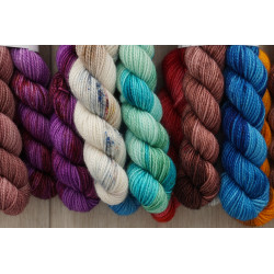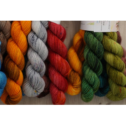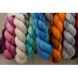 Die Farben sind eine Überraschung für euch. Insgesamt sind es 5 Farben zum bunten Kombinieren für schöne, bunte Strickprojekte.