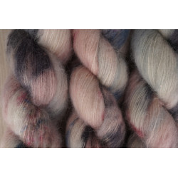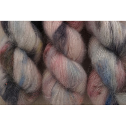 64 % Baby Suri Alpaka/ 23% Seide/ 3% Merino/ 10% Pailletten, 600 m/ 100 g; € 27,90/ 50 g
