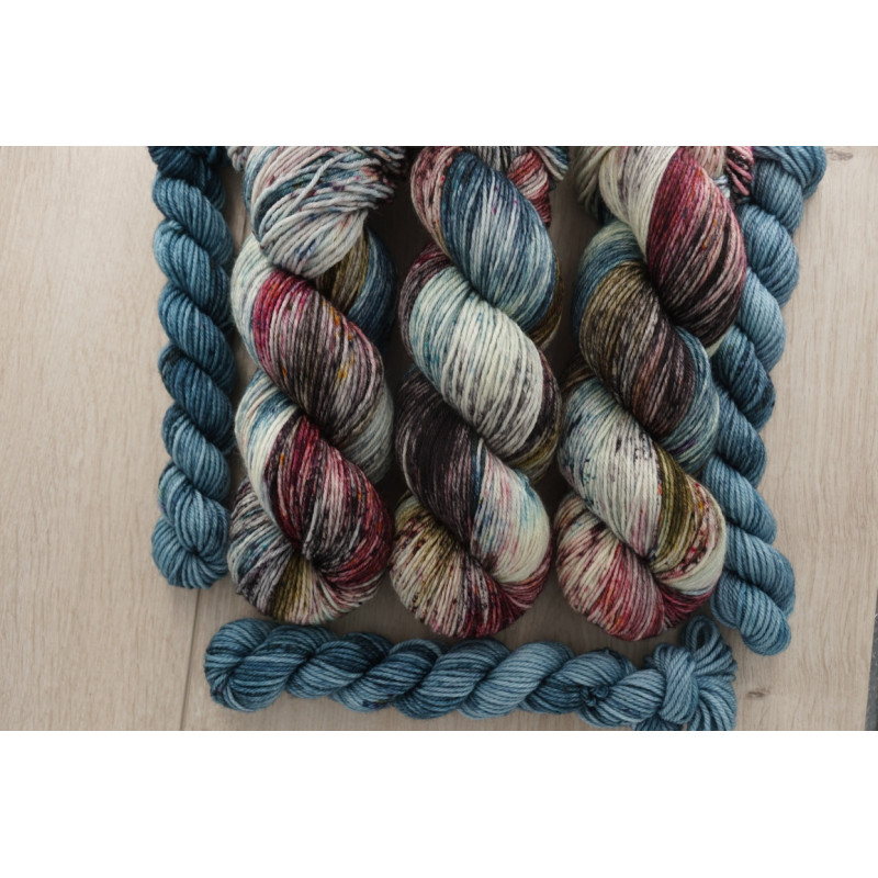 Das Set beeinhaltet einen 100g Strang Wolle und einen 20g Ministrang.