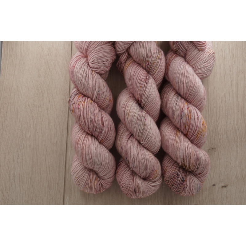 Die Wolle besteht aus kuschelig weicher Schurwolle (Merino extrafine) und Stellina. Es ist ein Singlegarn. Sie ist superwash ausgerüstet, und wunderbar für edle Accessoires oder Strickjacken/ Pullover geeignet. Durch den Stellinaanteil glitzert die Wolle zart.