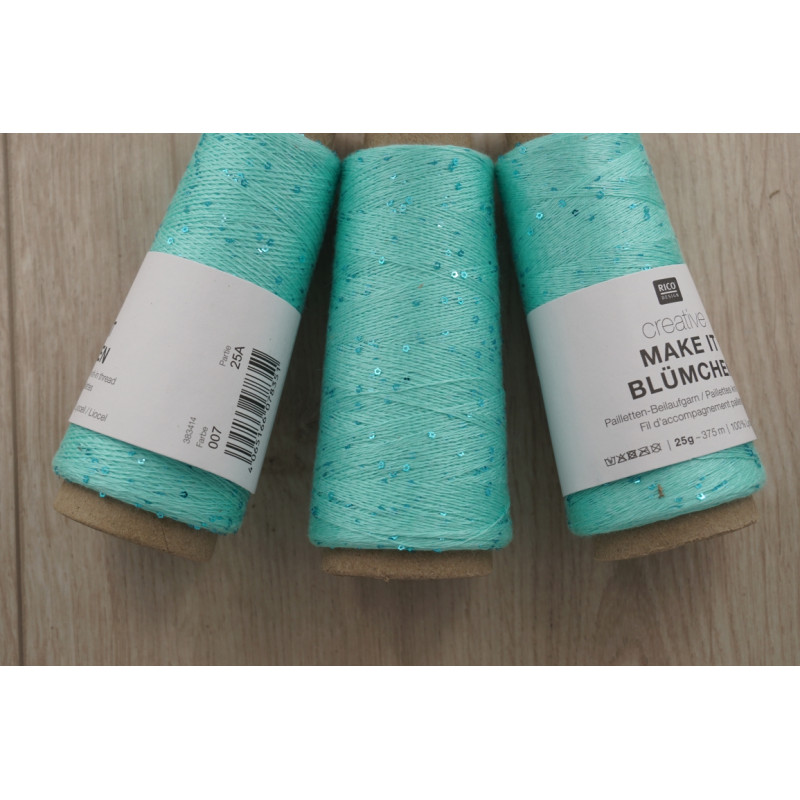 Creative Make It Blümchen ist ein glitzerndes Beilaufgarn, das mit zarten Pailletten in Blütenform verziert ist. Die kleinen Blümchen sind harmonisch in den Trägerfaden aus 100 % Lyocell eingearbeitet und farblich perfekt abgestimmt. Bei der Verarbeitung wird das Beilaufgarn einfach mitgeführt, wodurch das Strickstück einen außergewöhnlichen und auffälligen Look erhält.