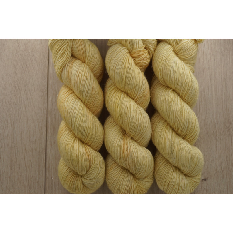 Die Wolle besteht aus kuschelig weicher Schurwolle (Merino extrafine) und Stellina. Es ist ein Singlegarn. Sie ist superwash ausgerüstet, und wunderbar für edle Accessoires oder Strickjacken/ Pullover geeignet. Durch den Stellinaanteil glitzert die Wolle zart.
