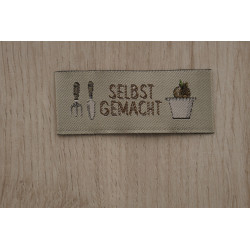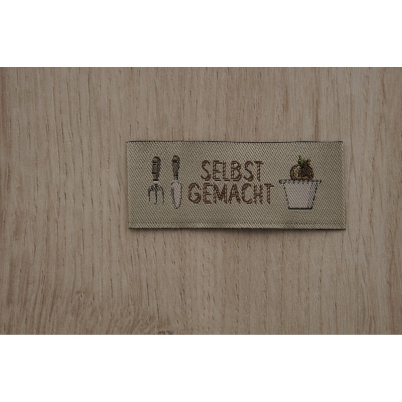 Webetikett "Selbstgemacht" (Gartenschaufel und Blumentopf)