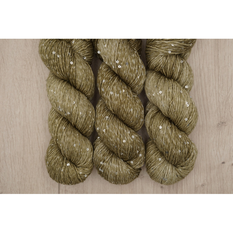 Die Wolle ist ein wunderbar weiches Merinogarn (Merino extrafine) mit glitzernden Pailletten und mit superwash Behandlung. Sie ist beim Stricken weich, hat einen besonderen Fall und ist perfekt geeignet für glitzernde Tücher, Pullover, Strickjacken und andere Accessoires. Sie ist bei 30 Grad waschmaschinengeeignet. Die Wolle stammt aus mulesingfreier Haltung.